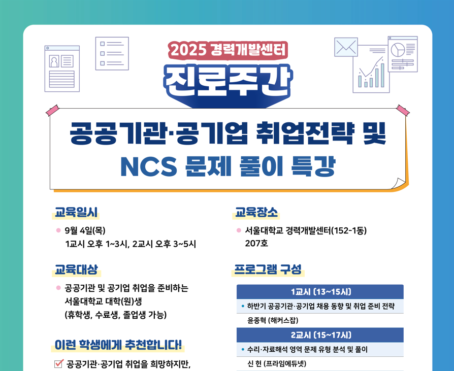 [2025 진로주간] 공공기관·공기업 취업전략 및 NCS 문제 풀이 특강