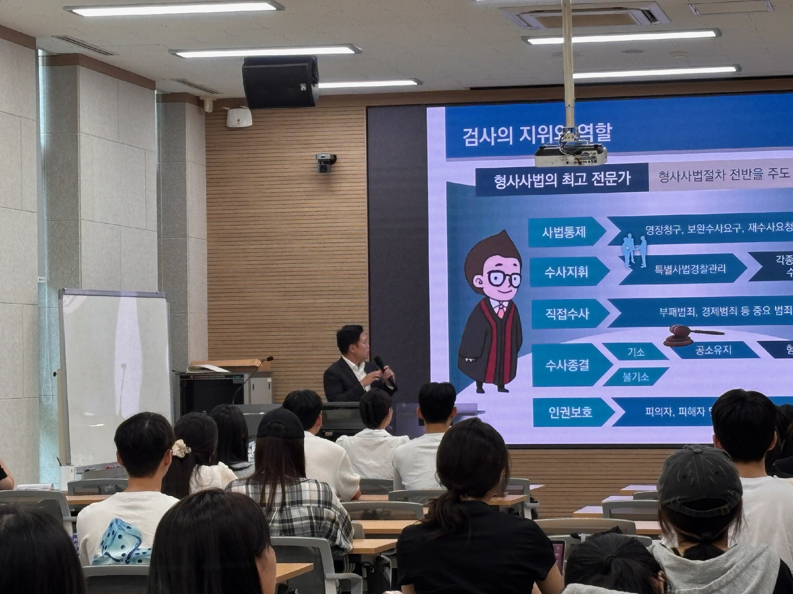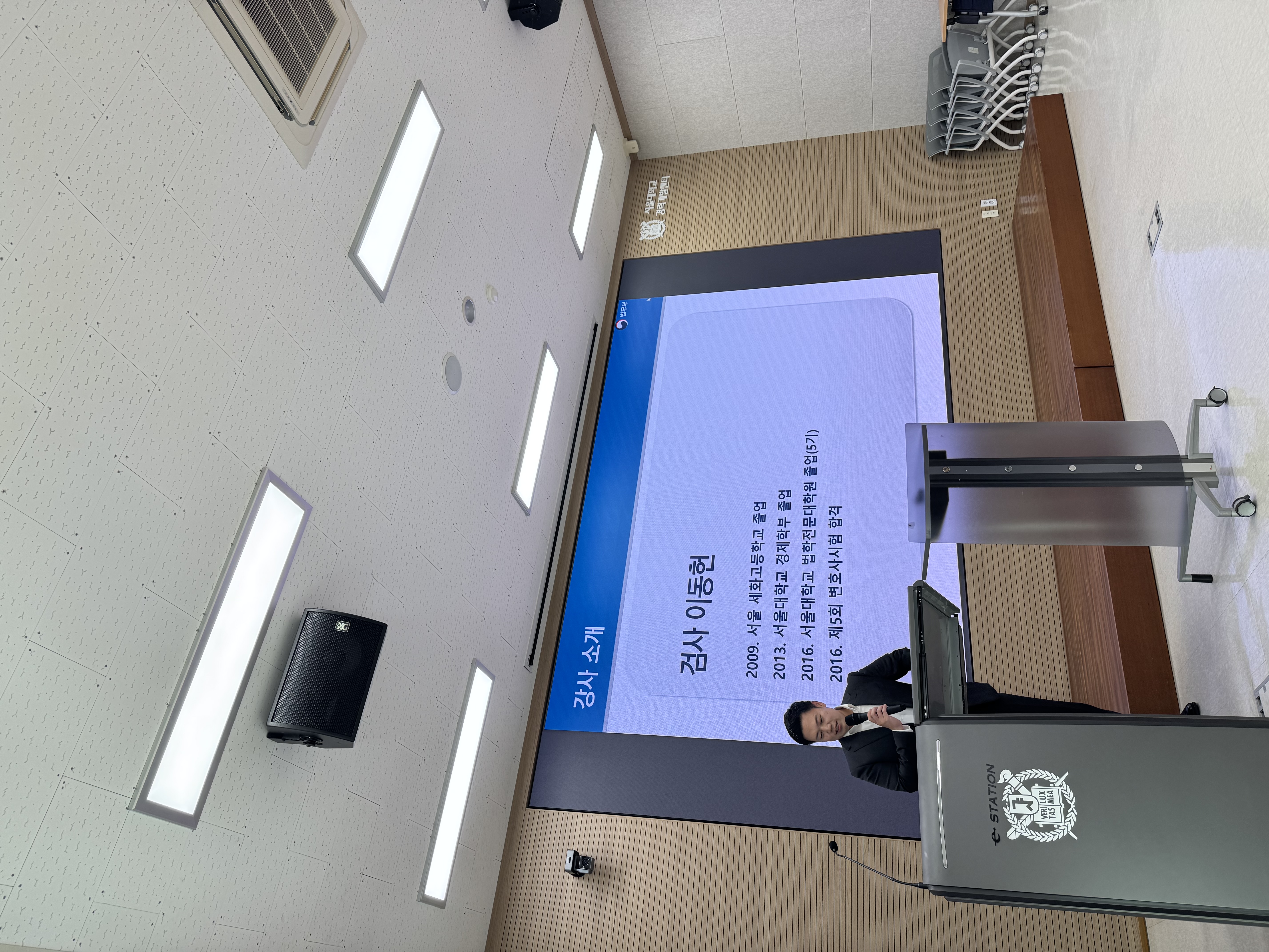○ 프로그램명 : 2025학년도 전문직 탐구생활-현직자에게 듣는 진로 이야기_검사 편 ○ 목 적 :법조인을 희망하는 학생들에게 현직자와의 소통 기회를 제공하여 진입 전략과 시험 준비, 업무 특성 등 현실적인 정보를 바탕으로 진로 설계에 도움을 주기 위함. ○ 기 간 : 2025-08-22 15:00~17:00 ○ 장 소 : 롯데국제교육관 208호 ○ 대 상 :서울대학교 학부생 및 대학원생 48명 |