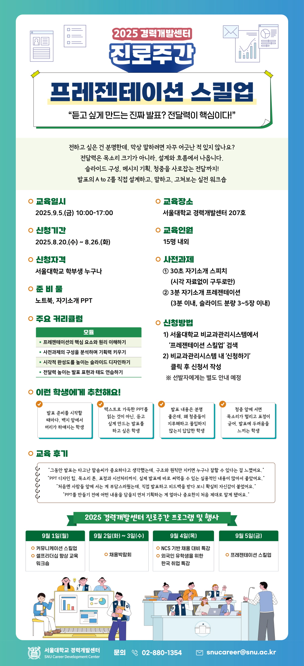 [모집연장][진로주간] 커뮤니케이션 스킬업(~8/27까지) 2025.08.19 |
