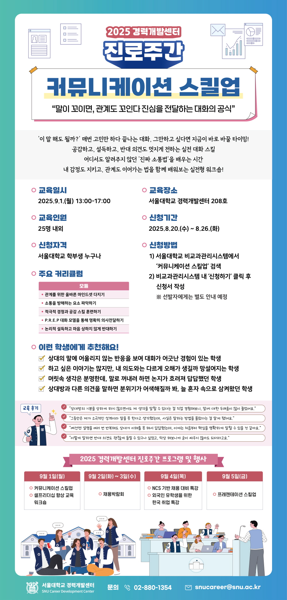 | 제목 | [모집연장][진로주간] 커뮤니케이션 스킬업(~8/27까지) | ||||
