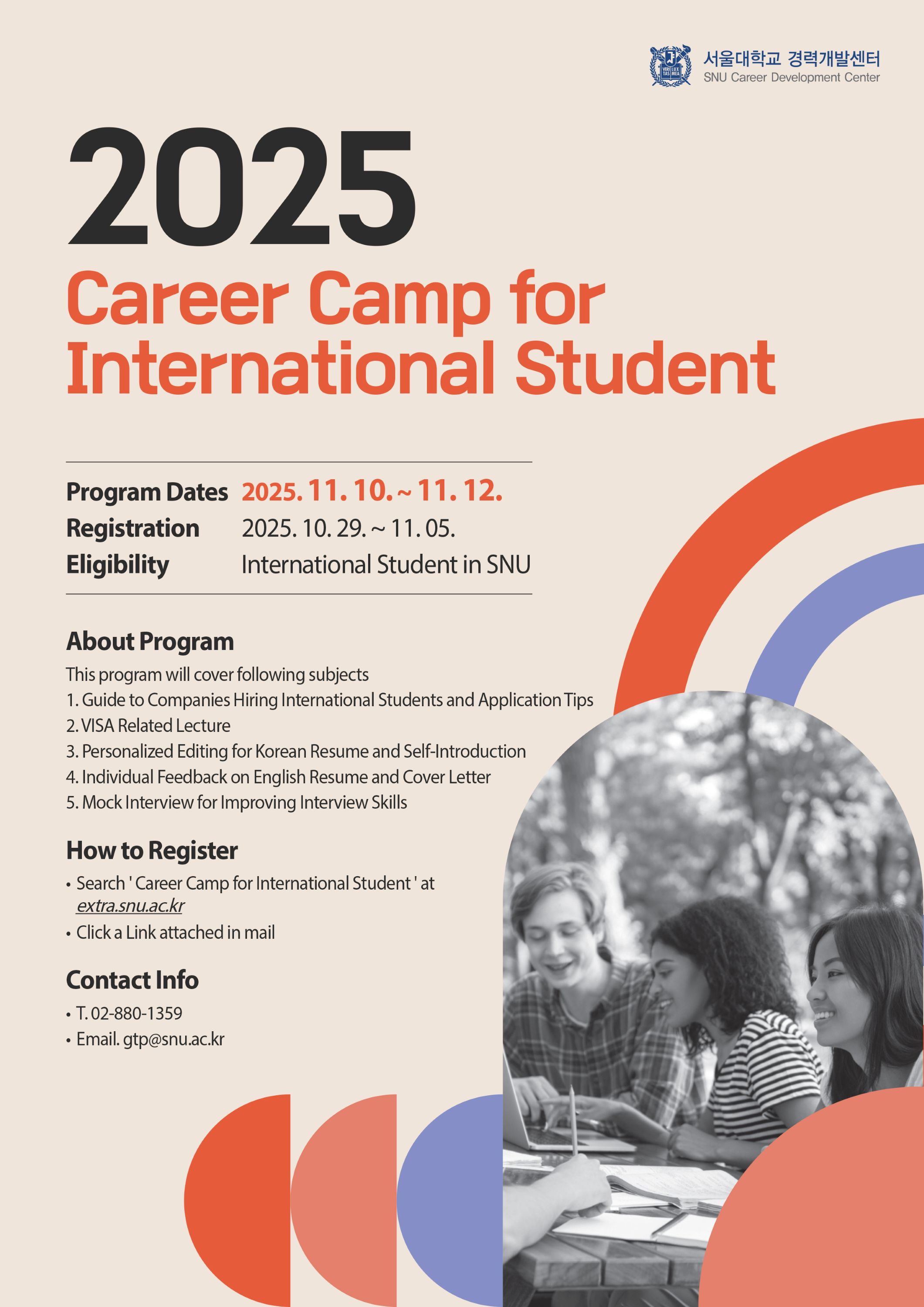 Hello, International Students at Seoul National University! This is the Career Development Center!