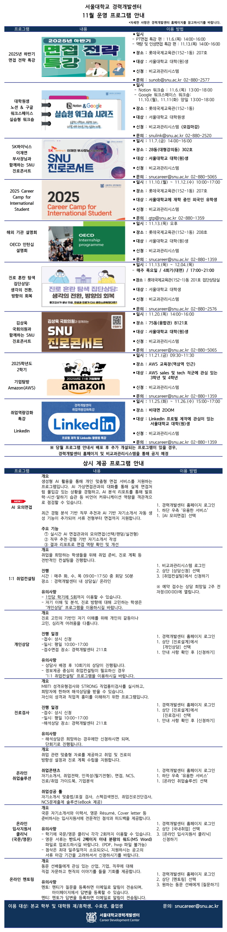 안녕하세요. 서울대학교 경력개발센터입니다.