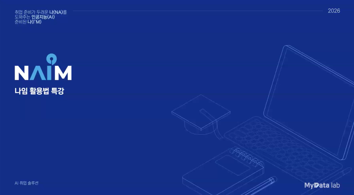 본 동영상에서는 기업·직무 분석, 자기소개서 작성, 면접 연습까지 취업 준비 전 과정에서 <나임> 서비스를 어떻게 활용할 수 있는지를 실제 사례와 시연을 통해 안내하고 있습니다.