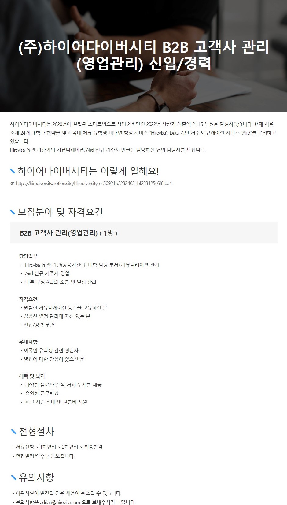 | Company Name | 주식회사 하이어다이버시티 | Date Posted | 2022-11-21 | ||||||||||||