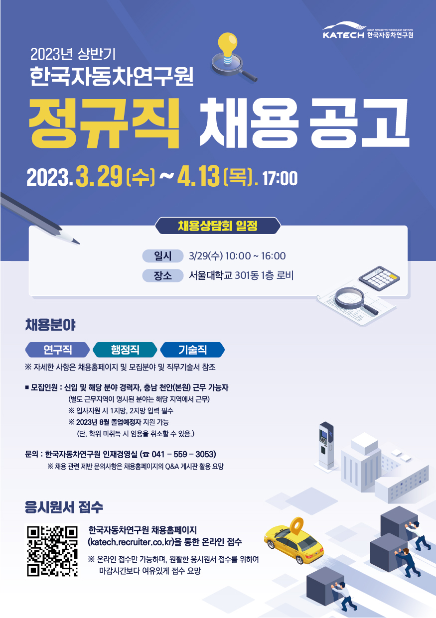 | Subject | [한국자동차연구원] 2023년 상반기 정규직 채용 | ||
