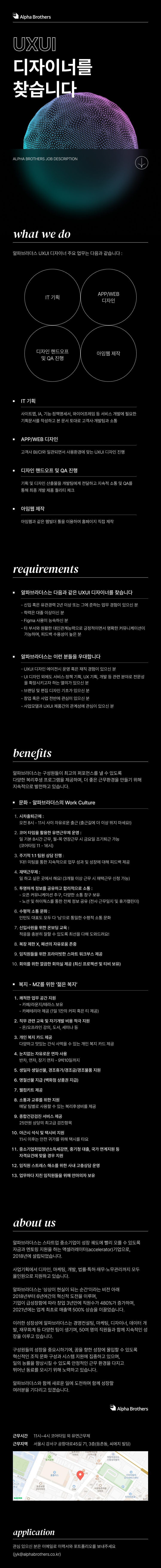 | Subject | [알파브라더스] 신입/경력직 UXUI 디자이너 채용 | ||