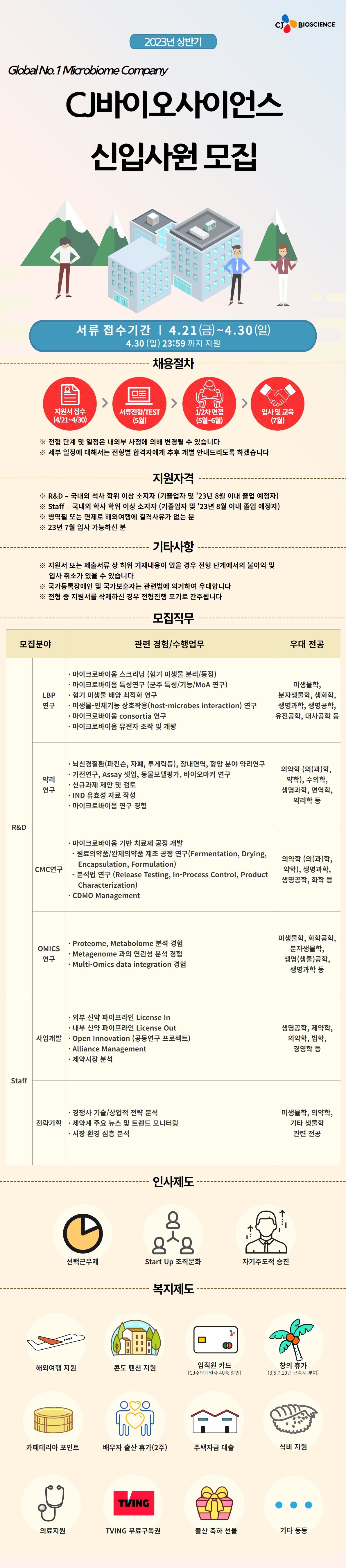 | Subject | [CJ바이오사이언스] 2023년 상반기 공채 공고 | ||