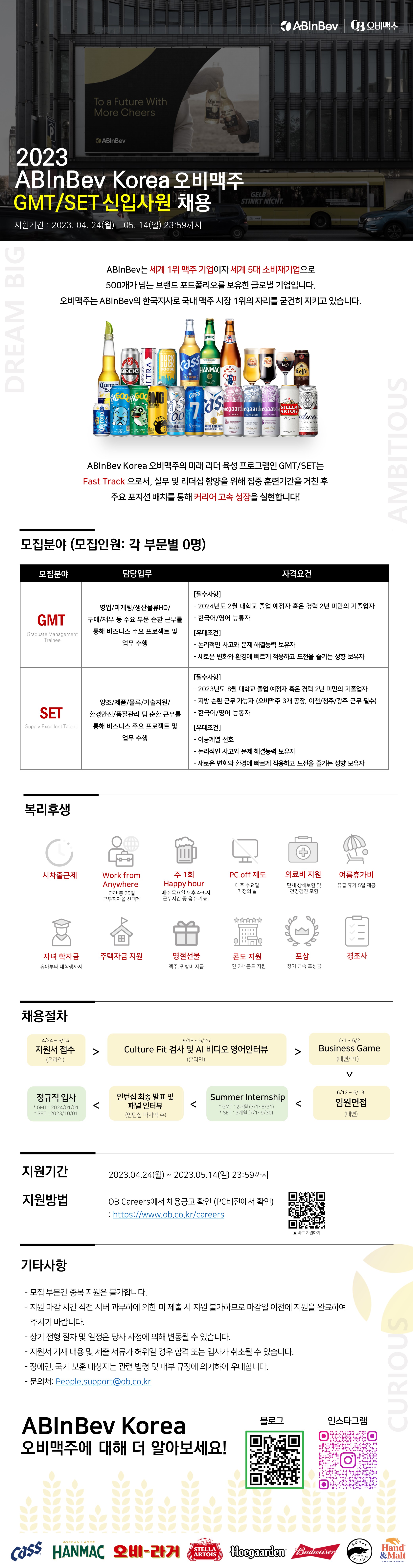 | Subject | [ABInBev Korea 오비맥주] 2023 GMT/SET 신입사원 채용 | ||
