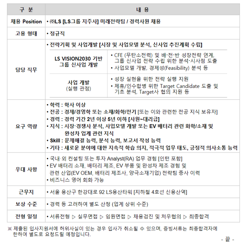 | Subject | [(주)LS] 미래전략팀 경력사원 채용 | ||