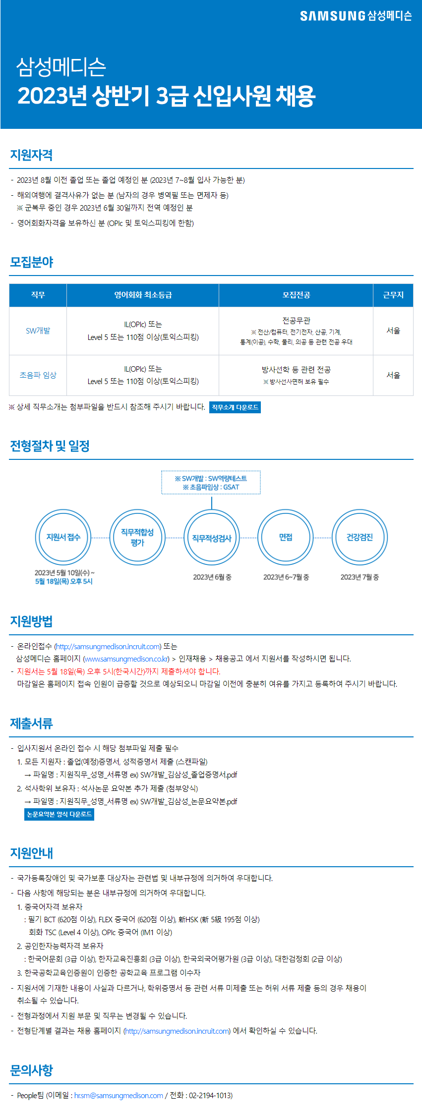 | Company Name | 삼성메디슨 | Date Posted | 2023-05-10 |