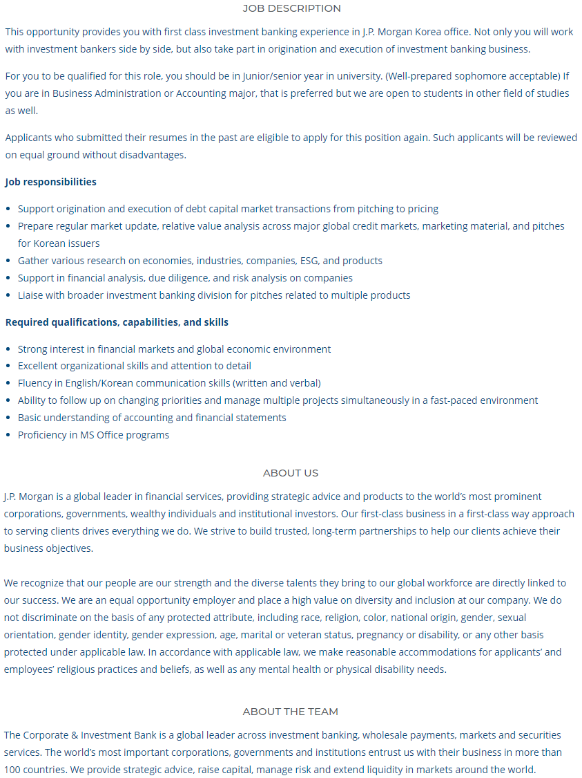 | Subject | JP Morgan Seoul CIB - DCM Origination Assistant 6mth contractor | ||