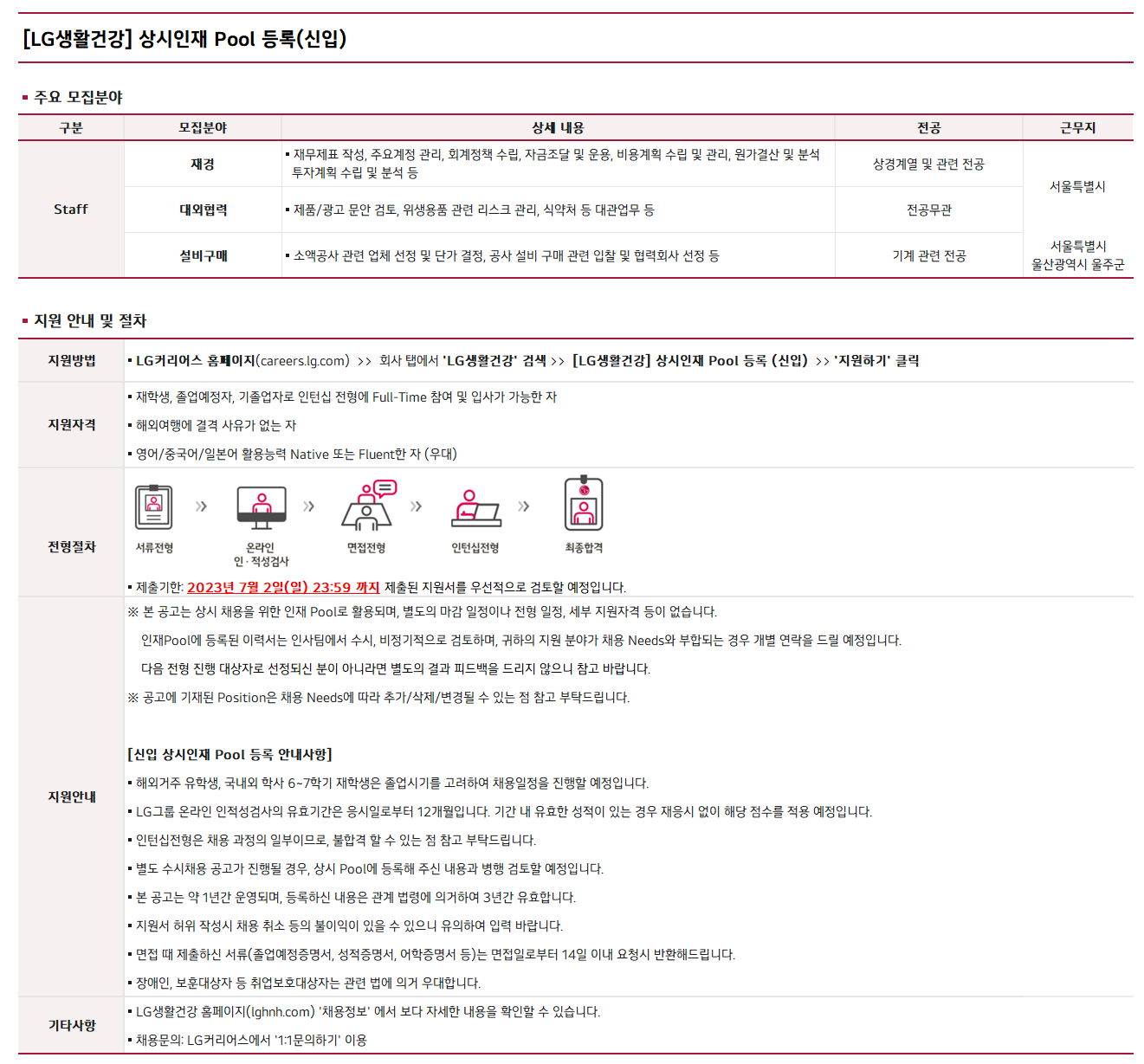 | Subject | [LG생활건강] 상시인재Pool(신입) | ||