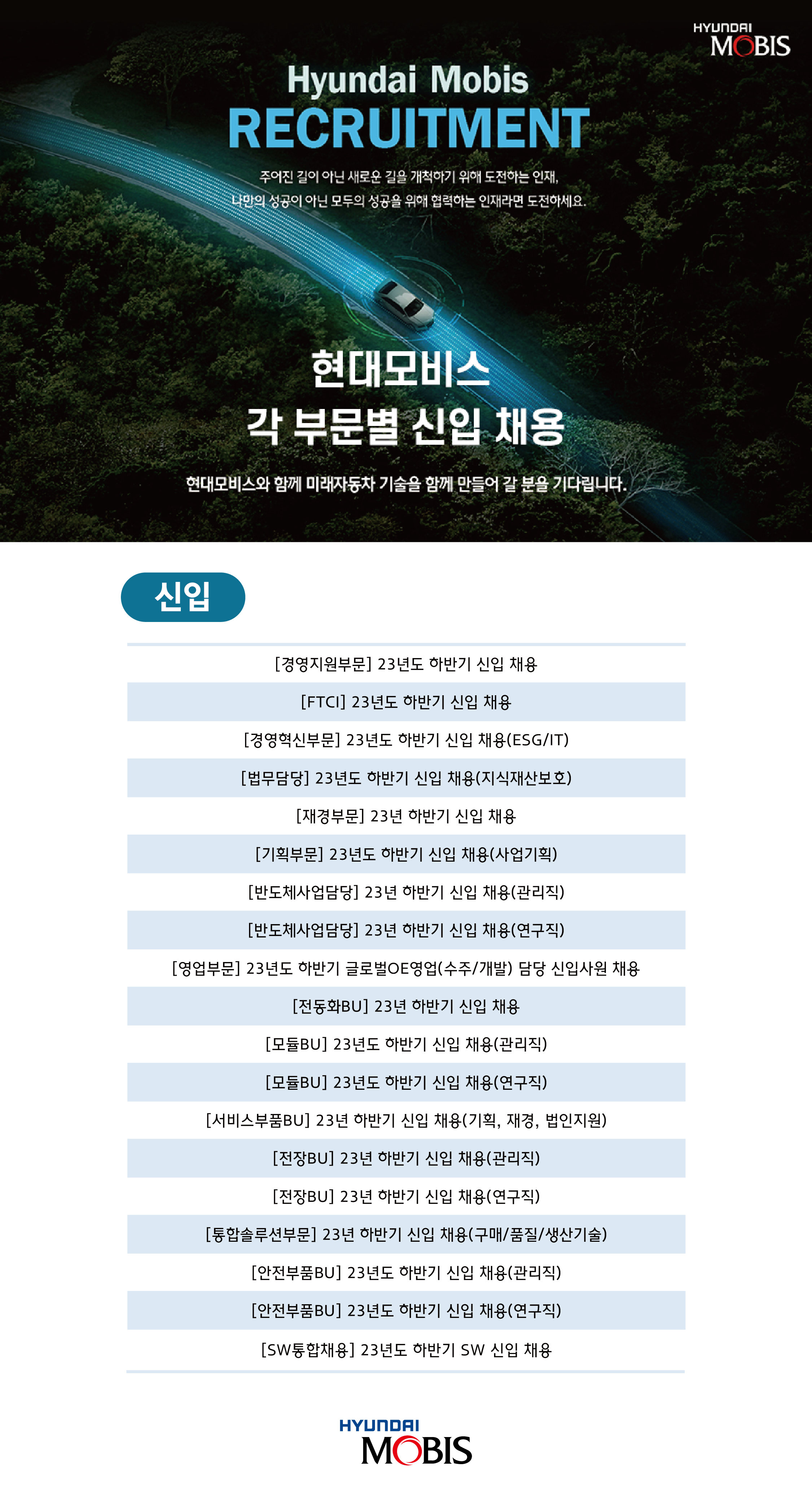 | Subject | [현대모비스] 2023 하반기 부문별 신입 채용 | ||