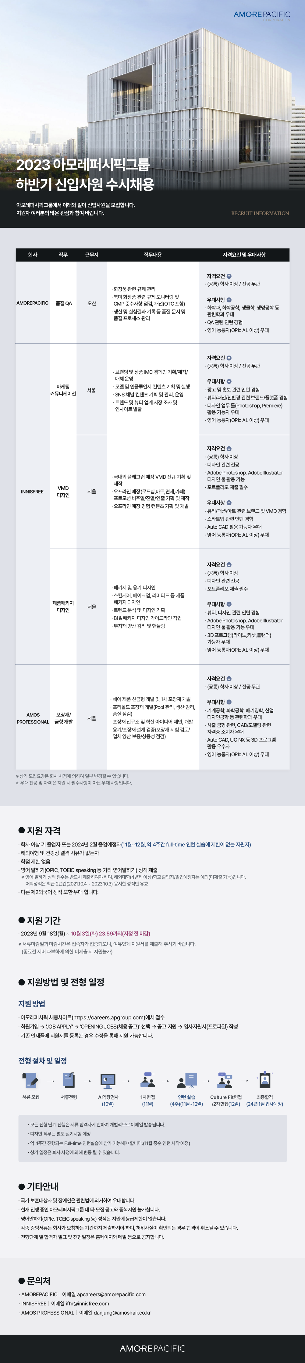 | Subject | [아모레퍼시픽그룹] 2023년 하반기 신입사원 수시채용 | ||