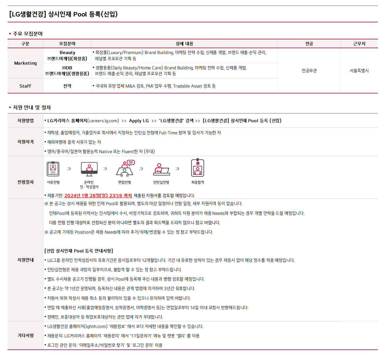 | Company Name | LG생활건강 | Date Posted | 2024-01-15 |