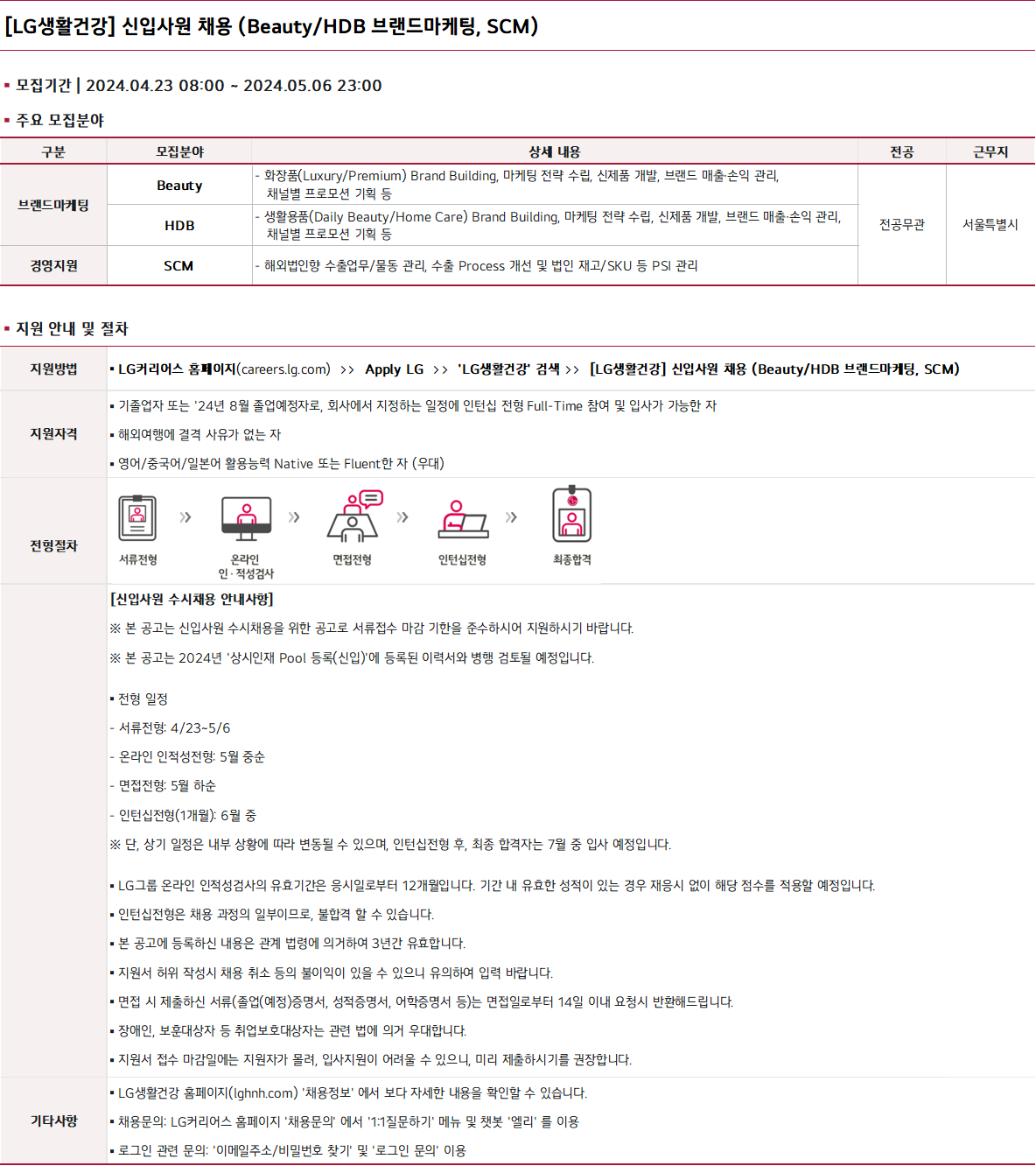 | Company Name | LG생활건강 | Date Posted | 2024-04-23 |