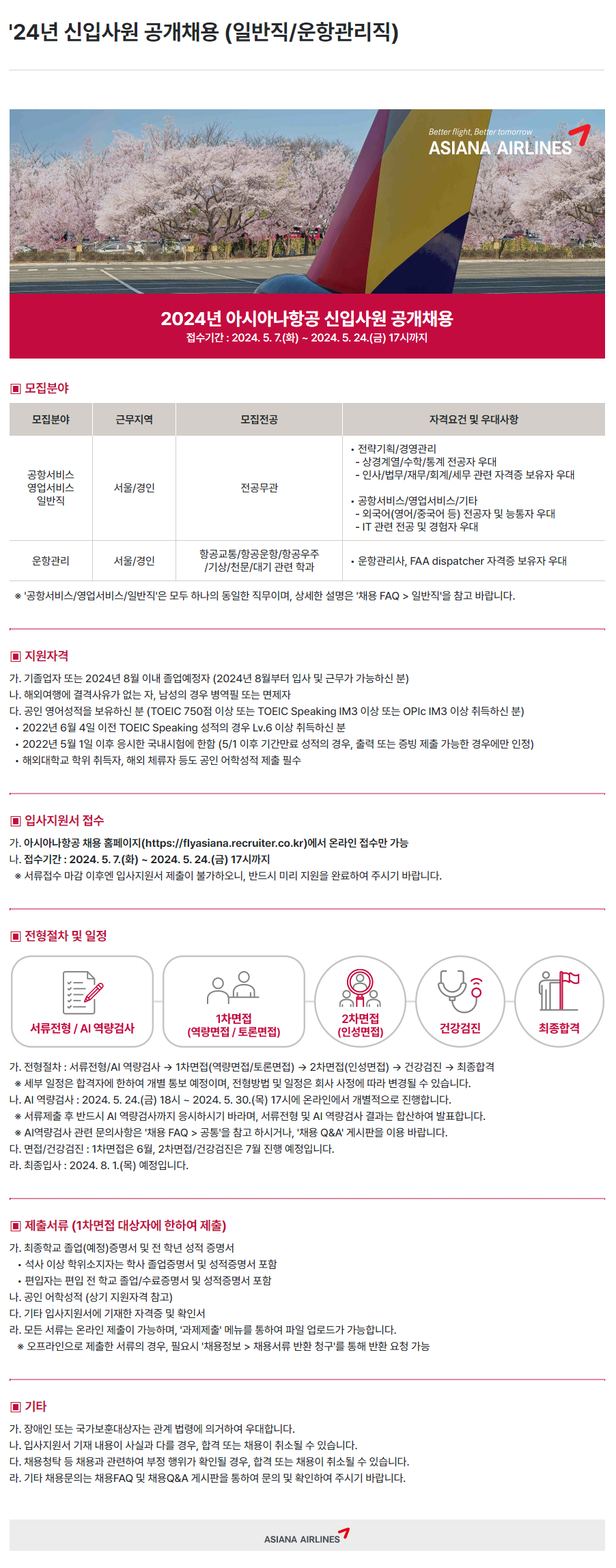 | Subject | 2024년 아시아나항공 신입사원 공개채용 | ||
