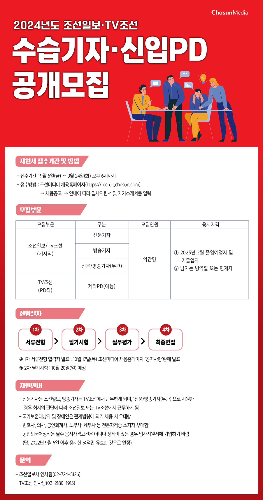 | Subject | 2024년도 조선일보·TV조선 수습기자 및 신입PD 공개모집 | ||