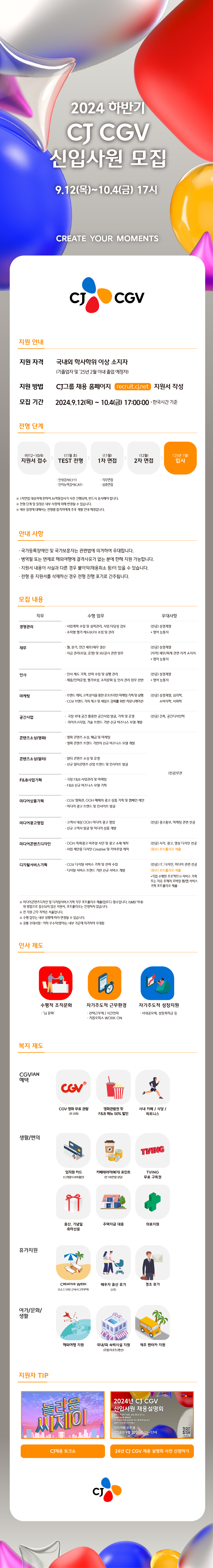 | Subject | [CJ CGV] 2024년 하반기 CJ CGV 신입사원 채용(~10/04) | ||