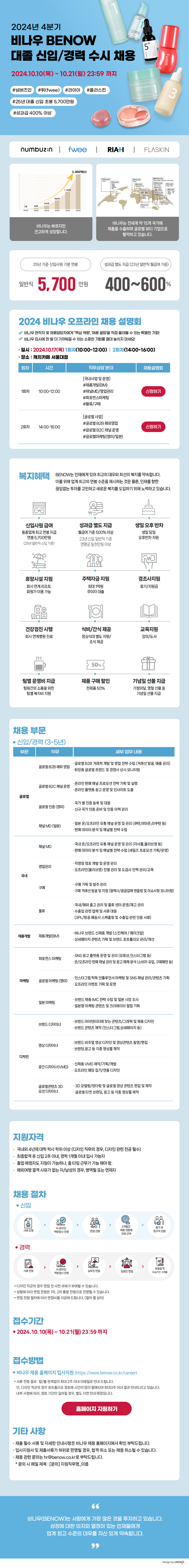 | Subject | [BENOW] 2024년 4분기 비나우 대졸 신입/경력 수시 채용(~10/21) | ||