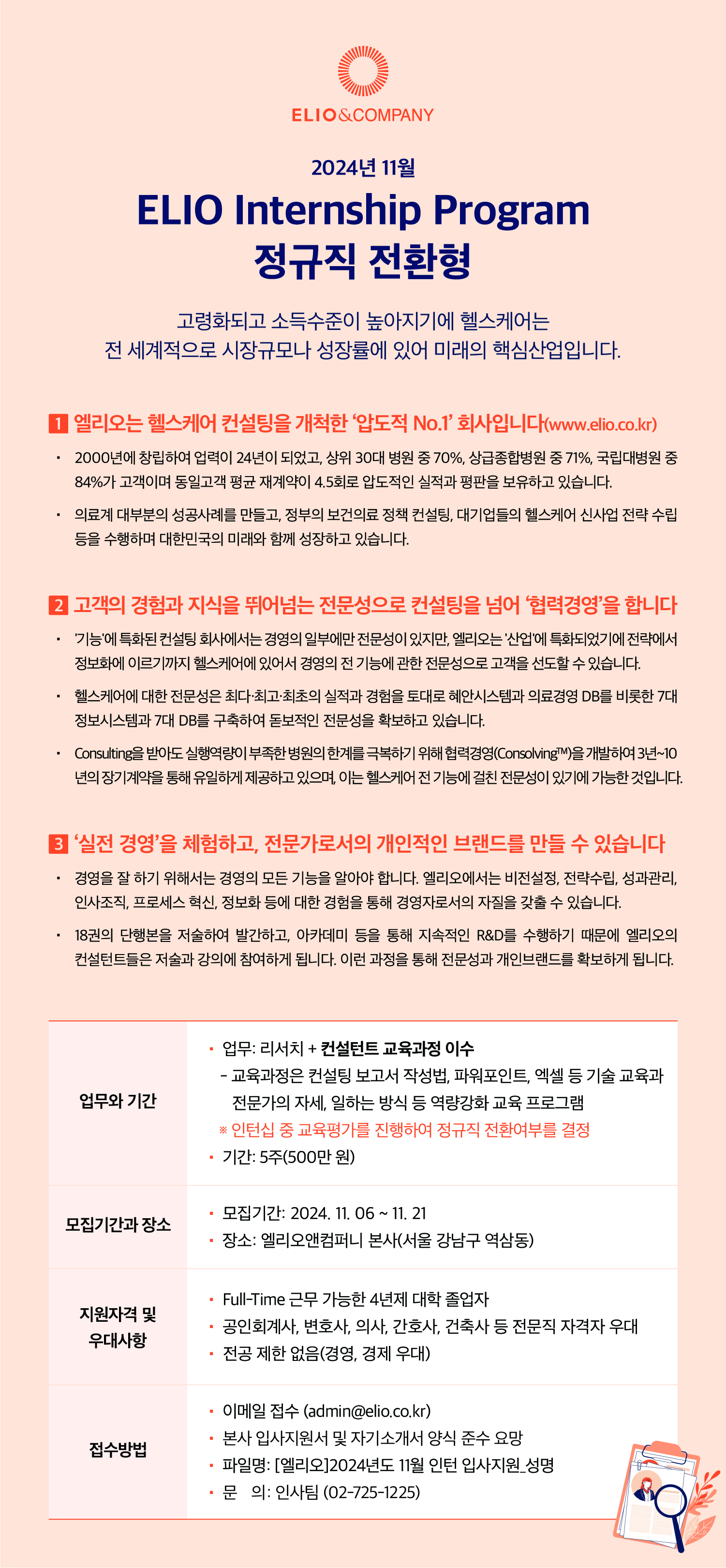 | Subject | 2024년도 11월 ELIO Internship Program(정규직 전환형) | ||