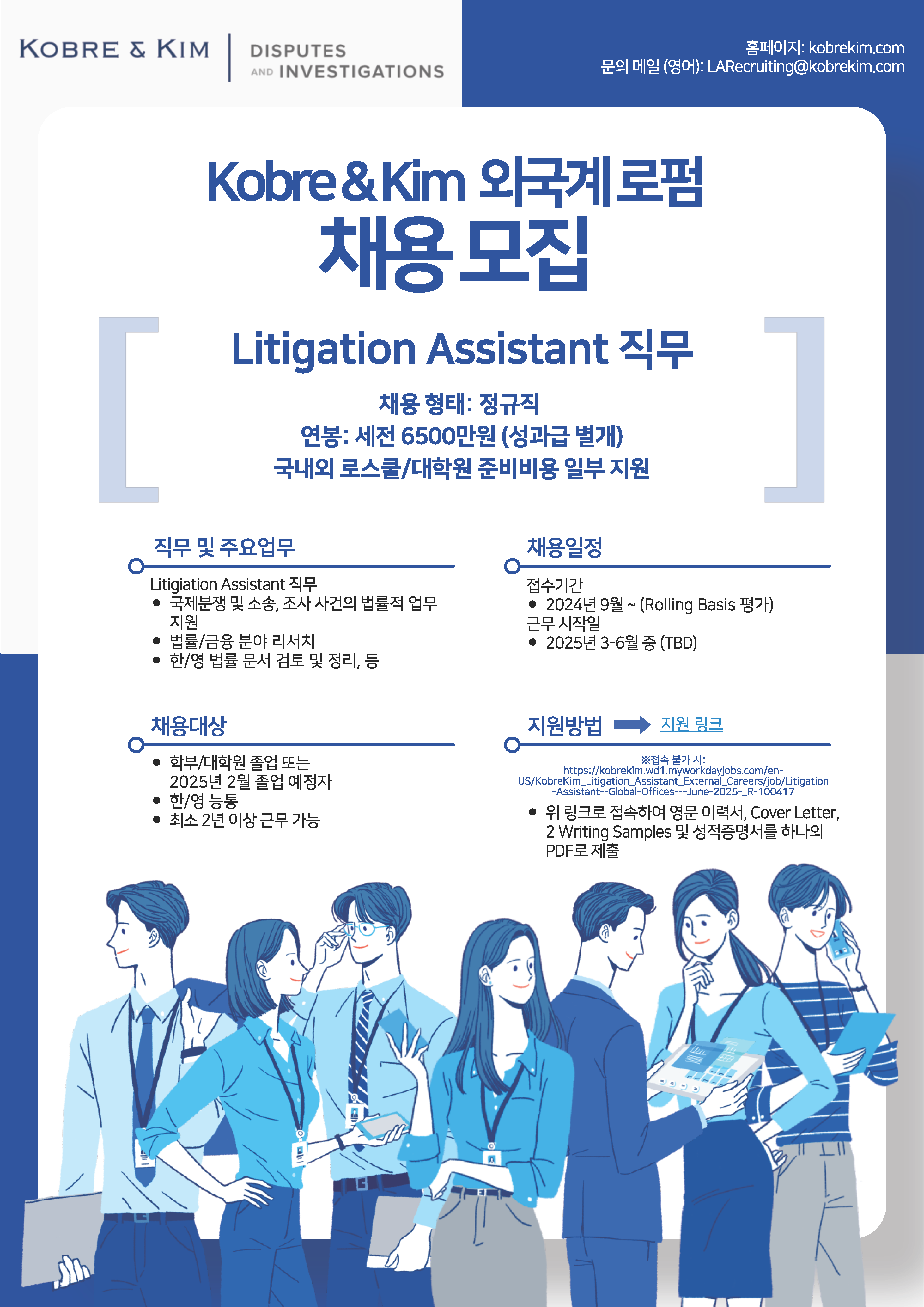 [외국계로펌] Kobre & Kim LLP – Litigation Assistant (정규직)]
