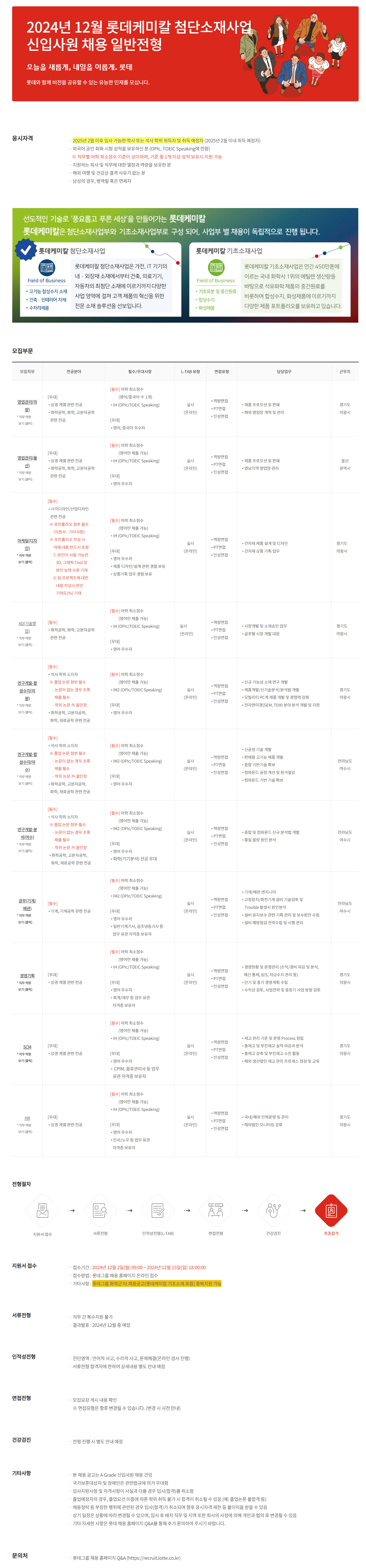| Subject | 2024년 12월 롯데케미칼 첨단소재사업 신입사원 채용 일반전형 | ||