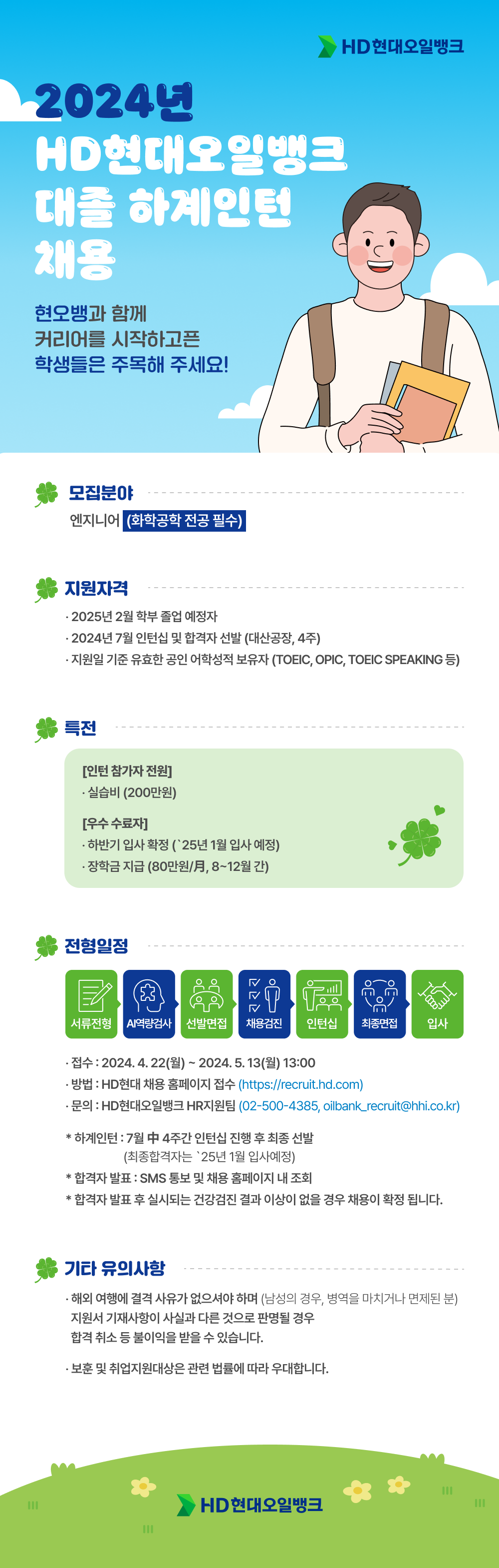 | Subject | 2024년 HD현대오일뱅크 대졸 하계인턴 채용 | ||